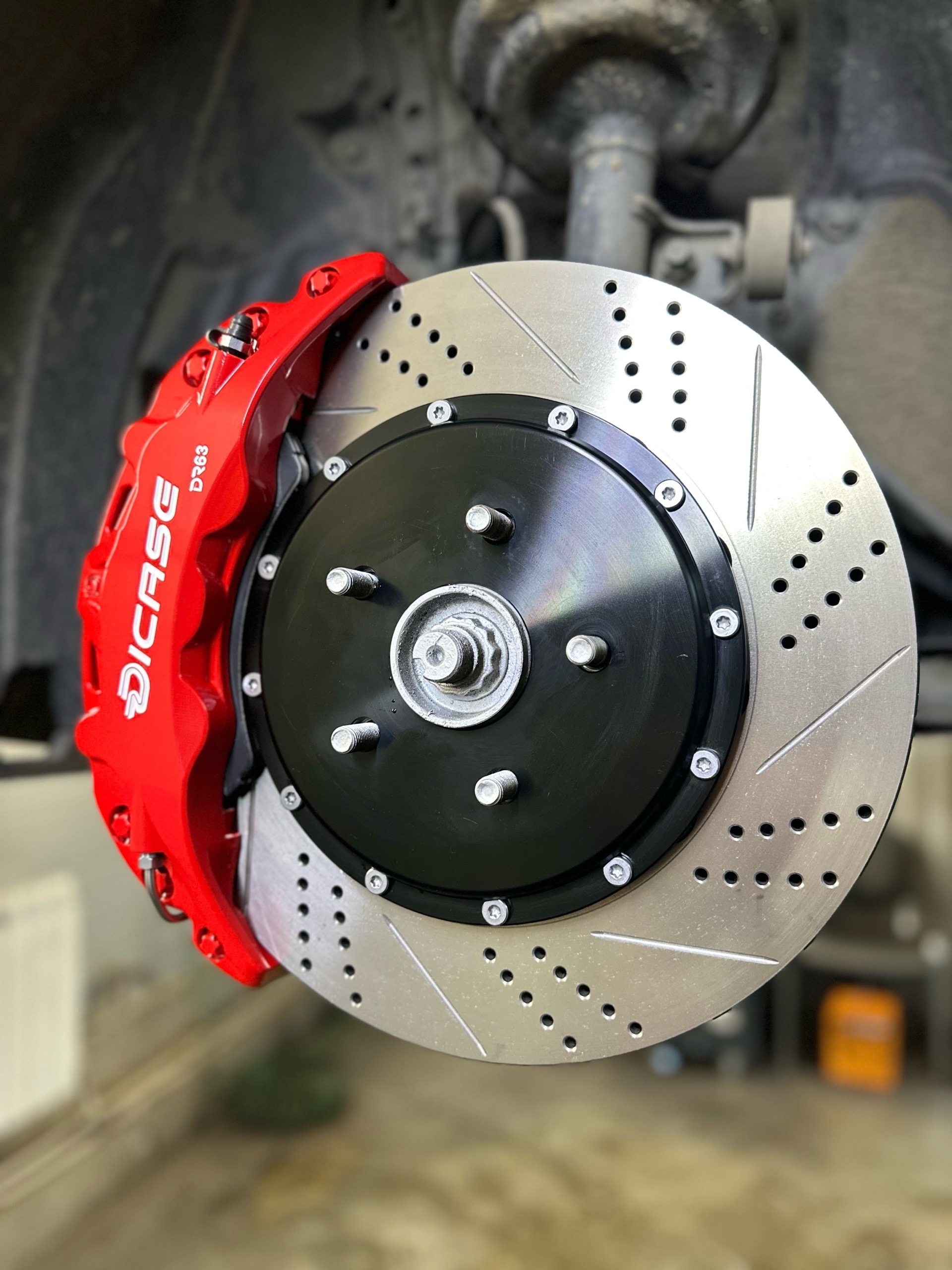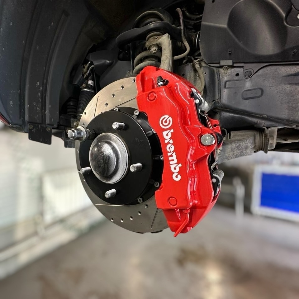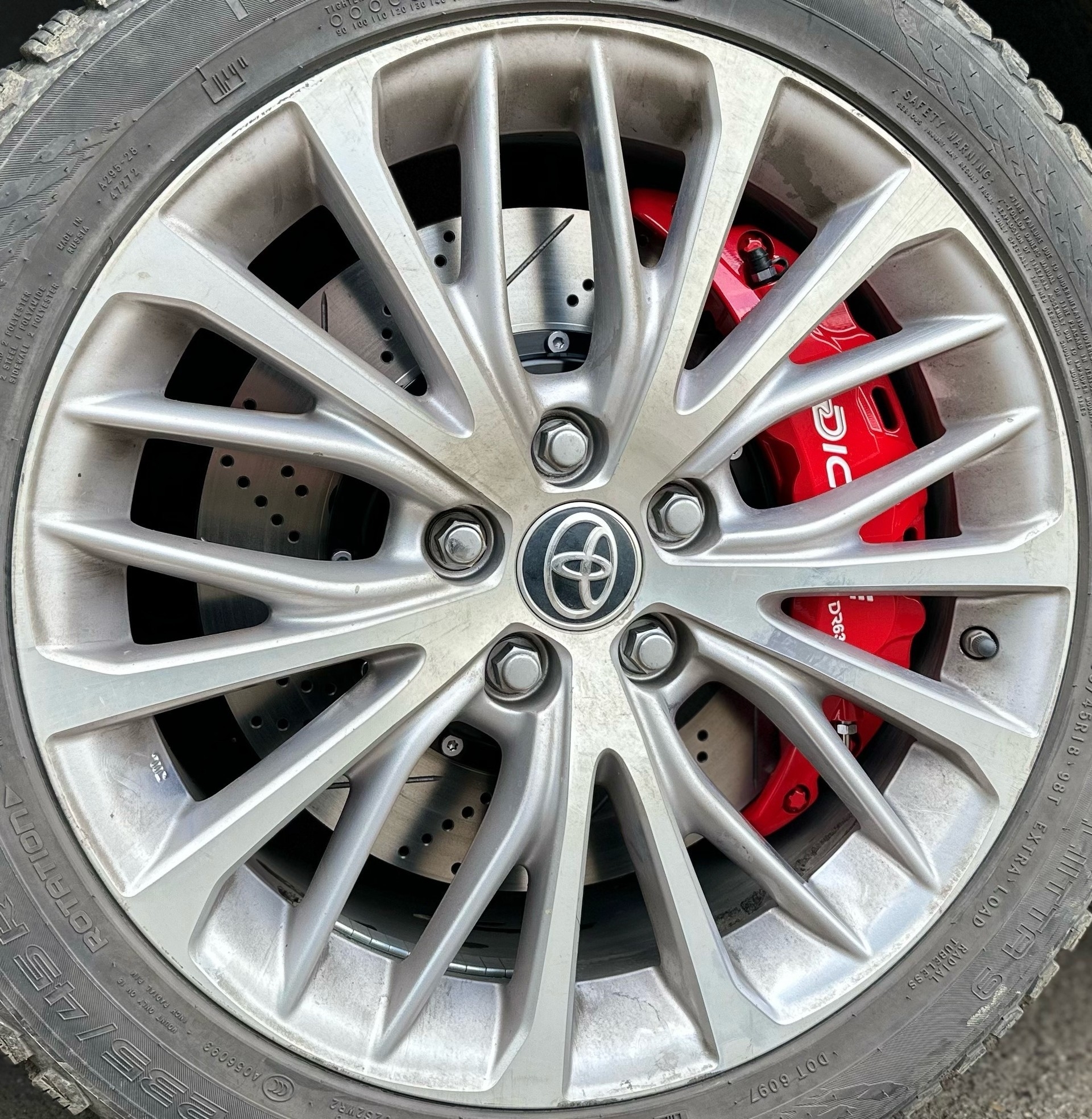 Например, в штатные колеса R18 Camry 70 мы предлагаем шестипоршневые суппорта Brembo либо Dicase, работающие в паре с роторами диаметром 355 мм. Это совершенно другой уровень торможения!