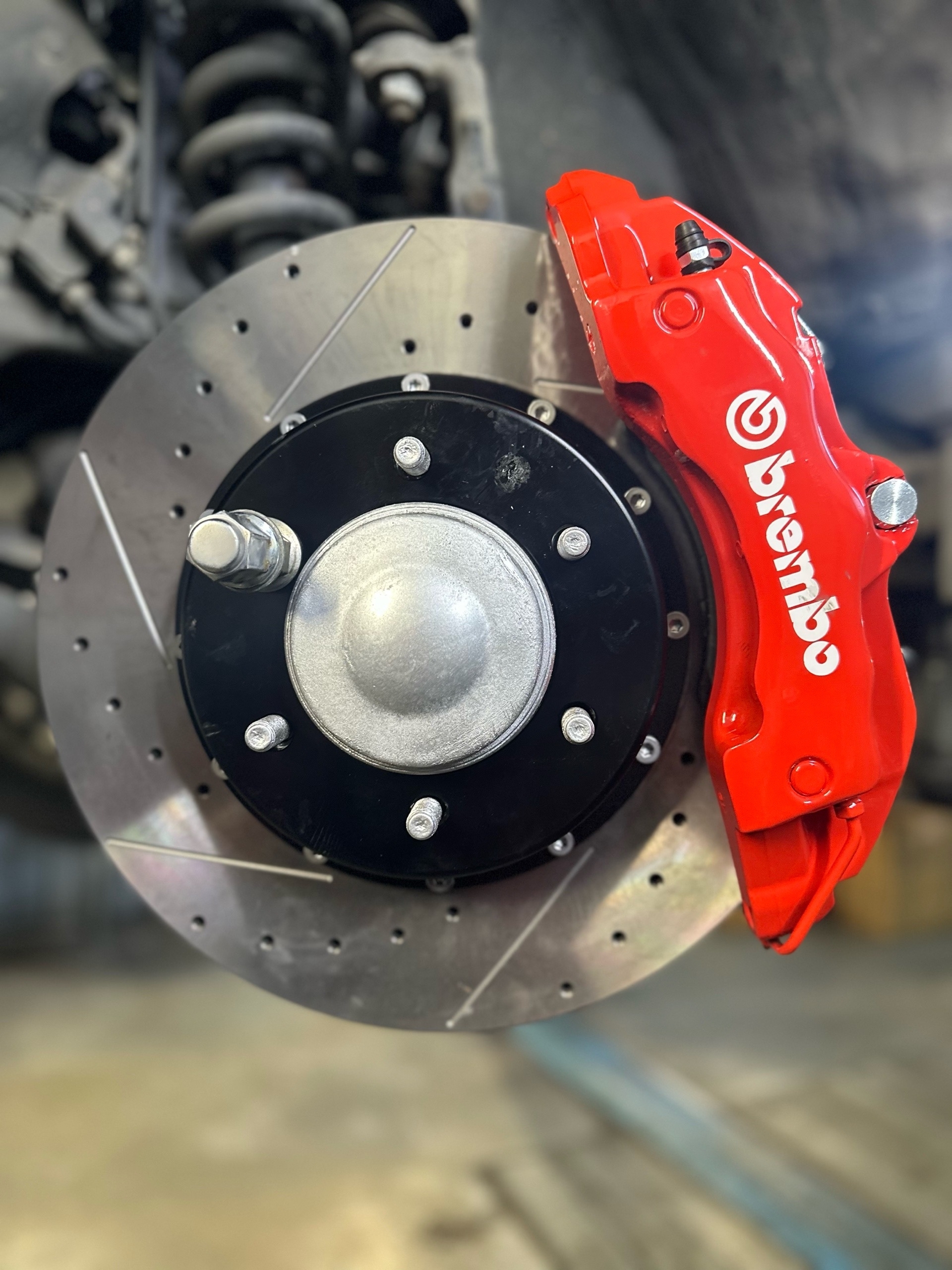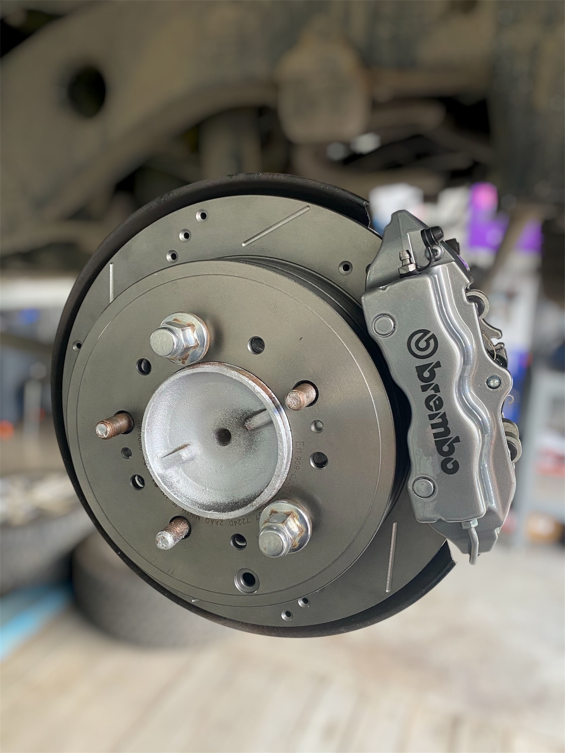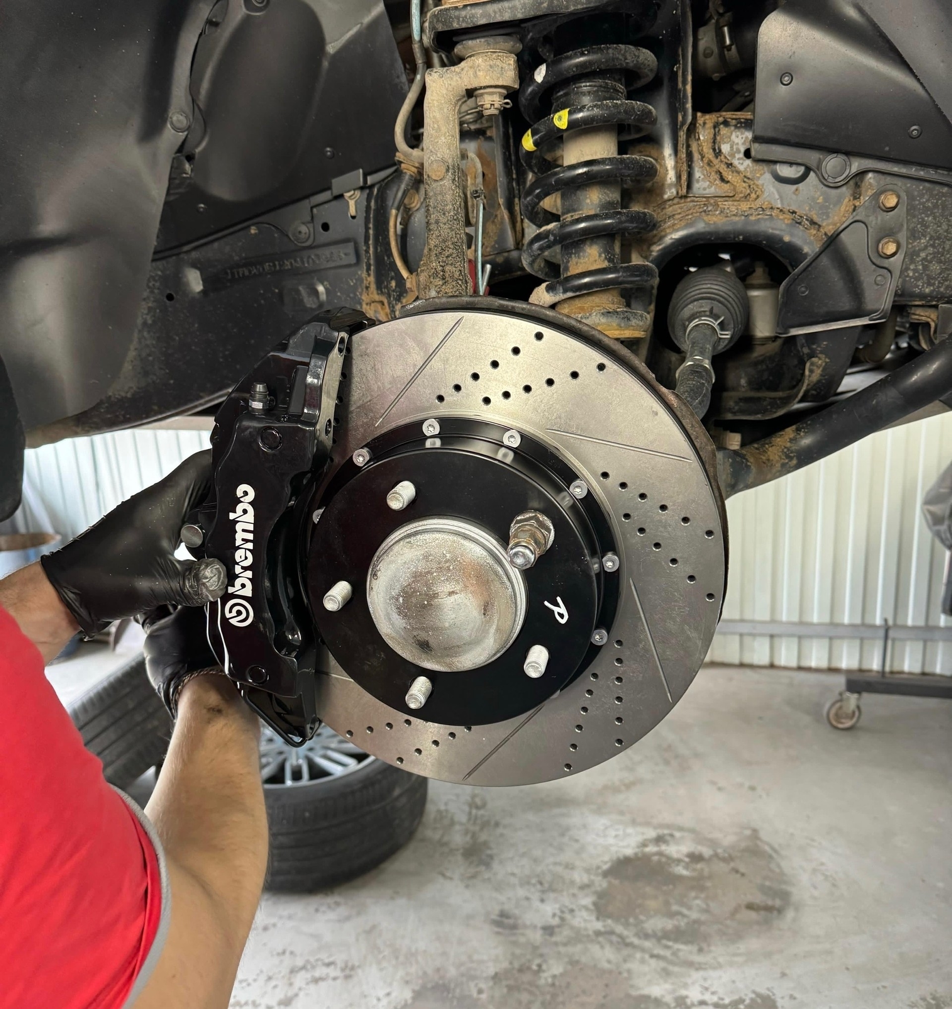 Например, в штатные колеса R18 Camry 70 мы предлагаем шестипоршневые суппорта Brembo либо Dicase, работающие в паре с роторами диаметром 355 мм. Это совершенно другой уровень торможения!